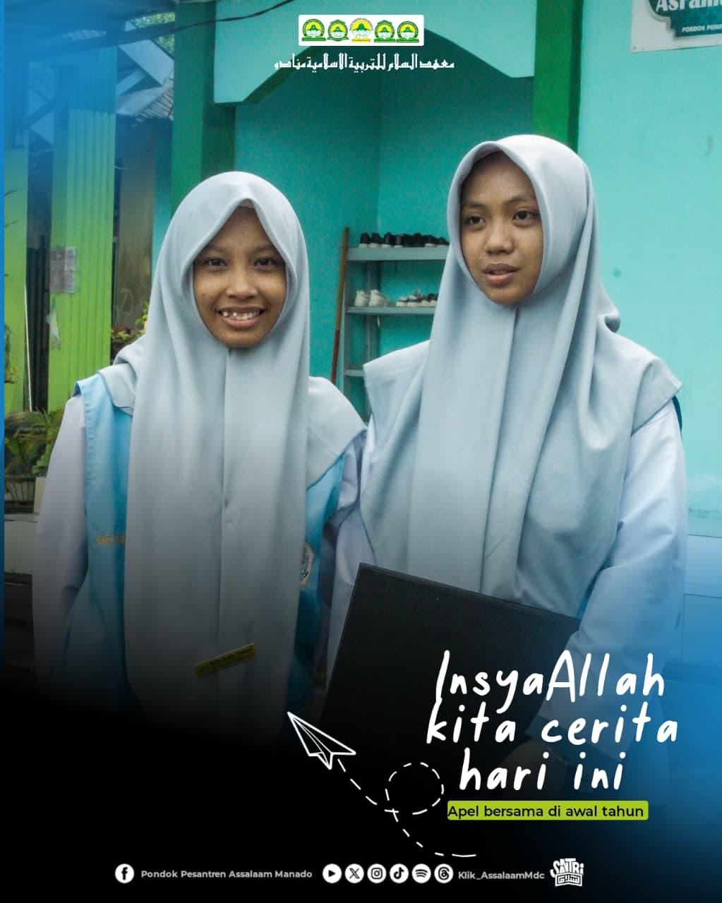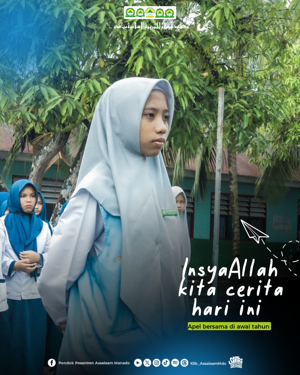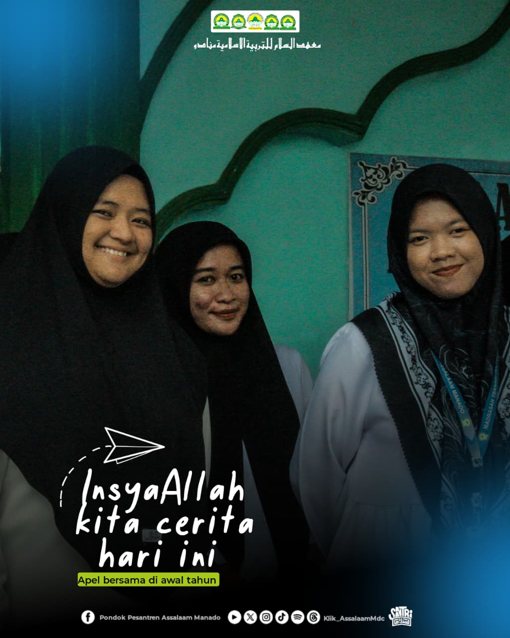 Apel bersama di awal tahun menjadi momentum penting bagi santri dan guru Pondok Pesantren Assalaam Manado untuk menata kembali niat, semangat, dan komitmen dalam menuntut ilmu. Kegiatan ini diikuti oleh seluruh santri serta dewan guru dengan penuh khidmat dan disiplin. Melalui apel awal tahun, pimpinan pondok menyampaikan arahan, evaluasi, serta motivasi agar seluruh civitas pesantren meningkatkan niat, kualitas ibadah, akhlak, dan prestasi di tahun yang baru. Apel bersama juga menjadi sarana memperkuat kebersamaan, ukhuwah, dan rasa tanggung jawab sebagai keluarga besar pesantren. Dengan kebersamaan ini, diharapkan santri dan guru Pondok Pesantren Assalaam Manado mampu melangkah lebih baik, lebih disiplin, dan lebih bersemangat dalam menjalankan aktivitas pendidikan serta pengabdian kepada agama, bangsa, dan umat.